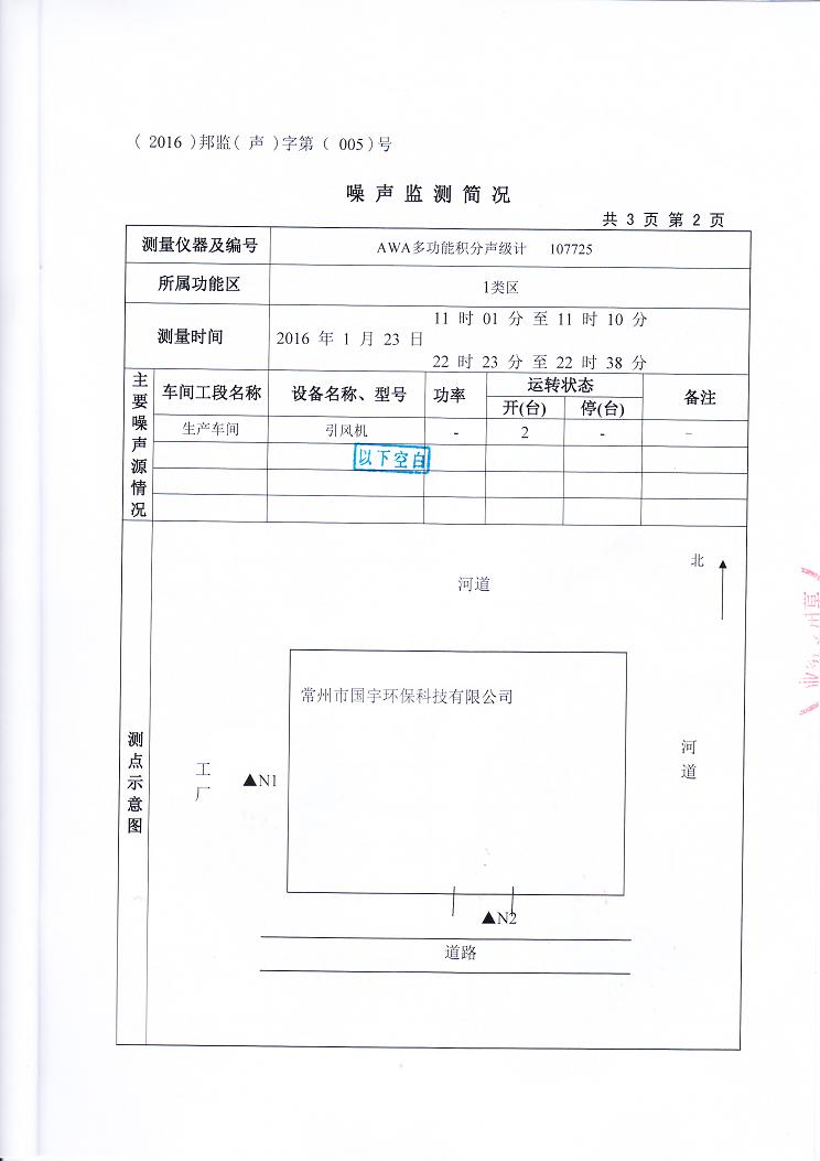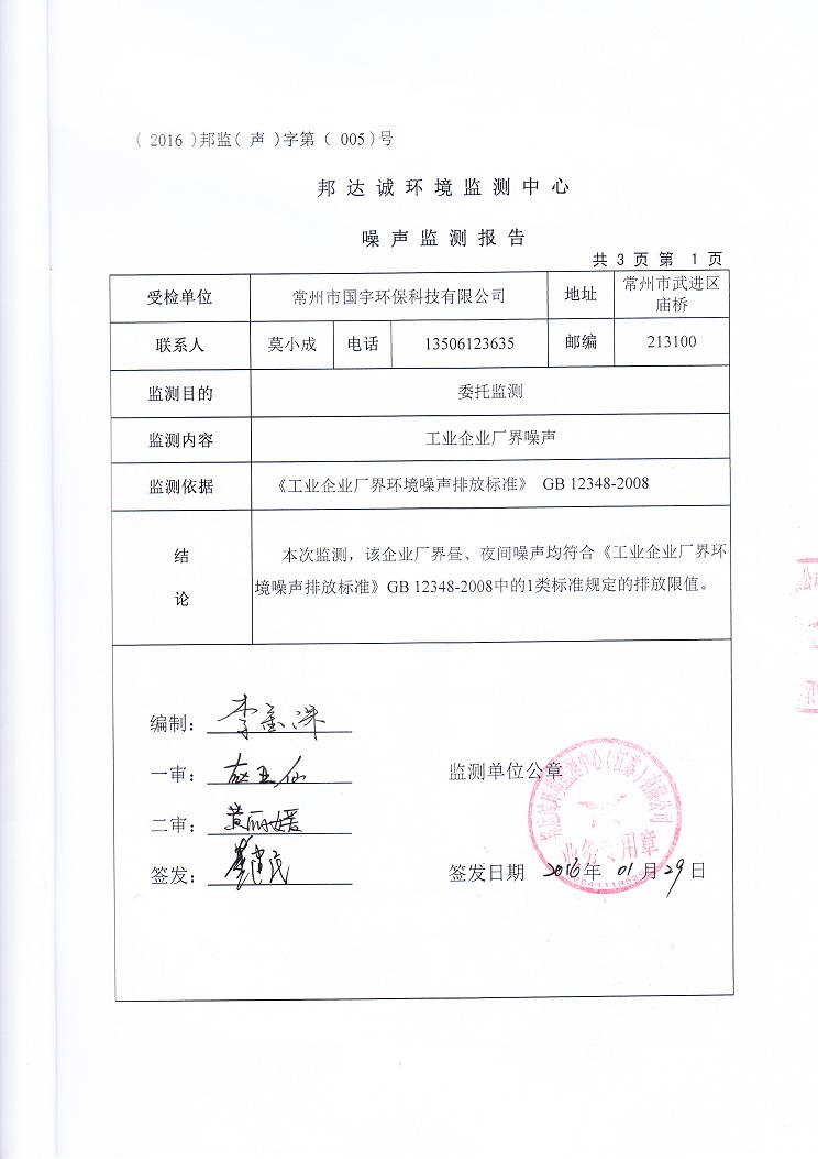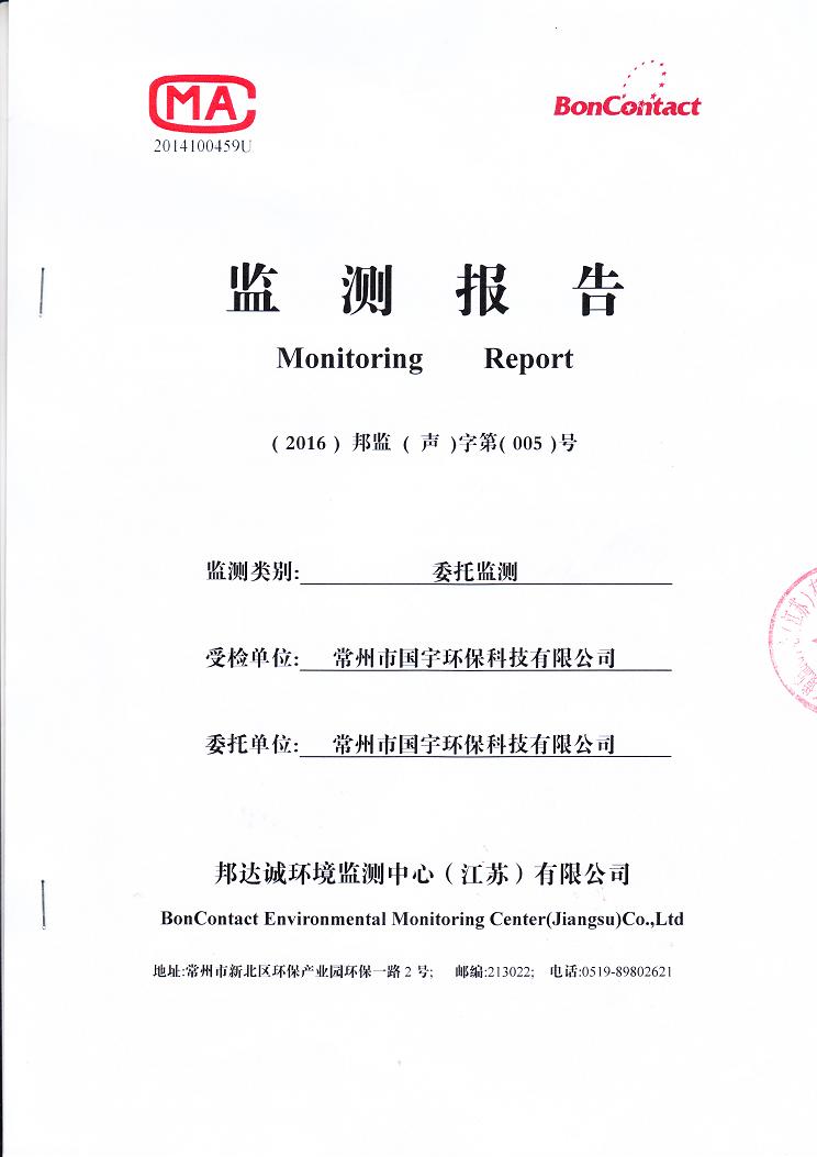 2016年常州市國(guó)宇環(huán)??萍加邢薰韭暠O(jiān)測(cè)報(bào)告網(wǎng)上公示