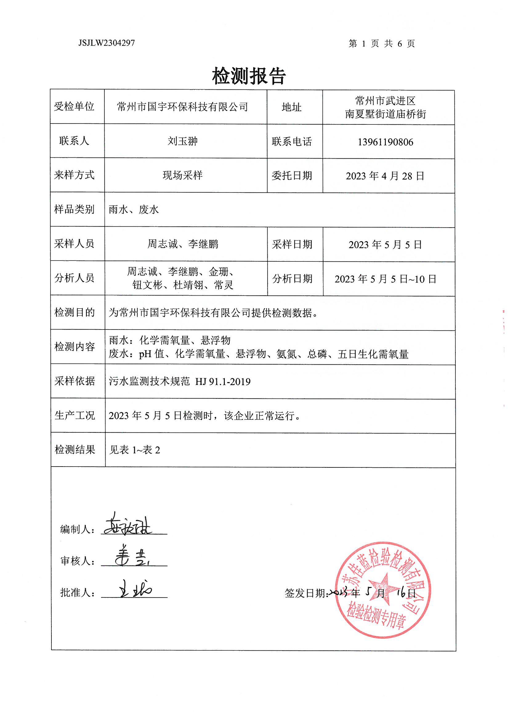 雨水、廢水檢測(cè)報(bào)告