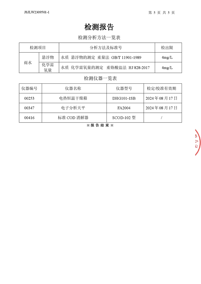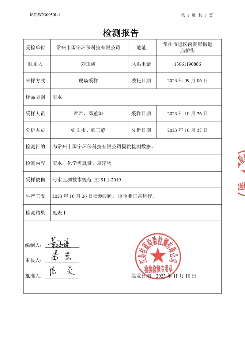 雨水檢測(cè)報(bào)告